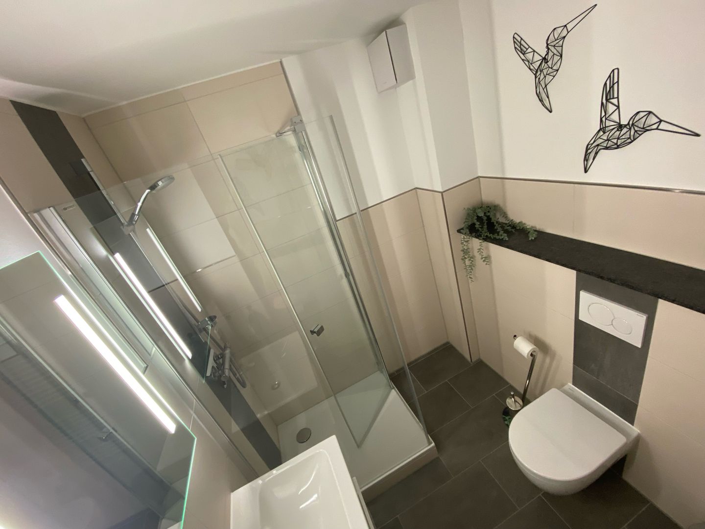 Das helle und freundlich gestaltete Duschbad wurde im Frühjahr 2022 komplett erneuert.