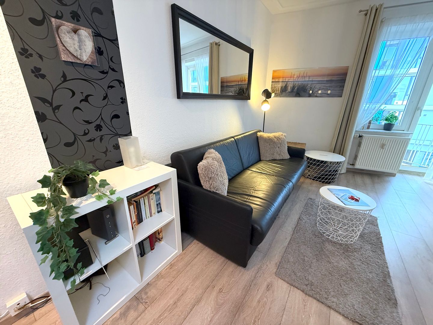 Komplett renoviertes Wohn- und Schlafzimmer mit direktem Zugang zum Balkon. Das Wohn- und Schlafzimmer ist mit einer Schlafcouch mit einer hochwertigen Matratze (160 x 200cm), einer Kommode und einem Essplatz für 2 Personen ausgestattet. Ein 2-türiger Kleiderschrank steht im Flur zur Verfügung. Zur Unterhaltung stehen ein 60" Samsung Tv auf einem Lowboard und eine Bluetooth Soundbar. Das Wohn- und Schlafzimmer ist mit modernem Laminatboden ausgelegt. Das Fenster lässt sich durch einen Vorhang etwas verdunkeln.