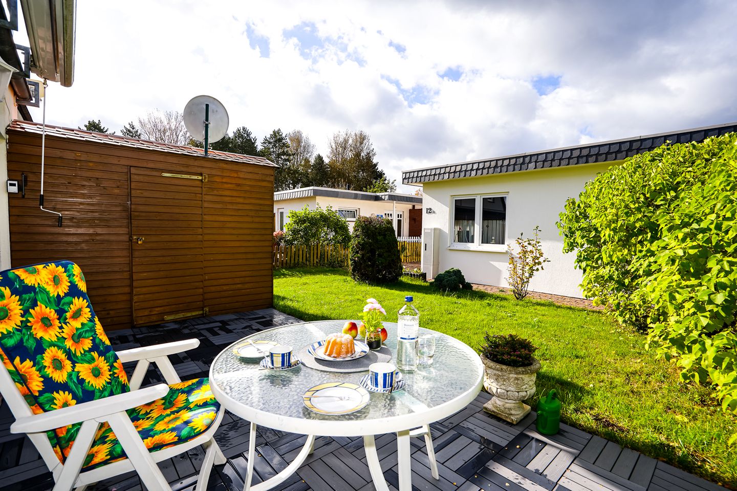 Ein Fahrrad kann in einem Schuppen am Haus untergestellt werden.