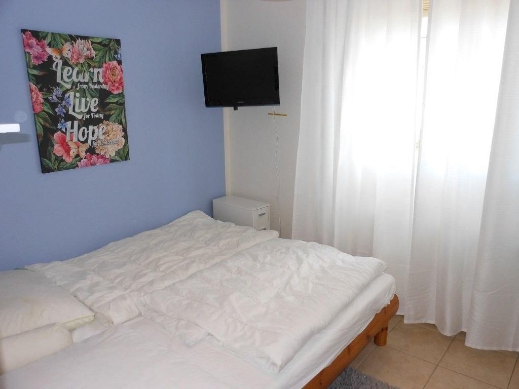 Zwei komfortable Schlafzimmer, eines mit einem Doppelbett (2x 90x200), Kleiderschrank, Kommode, Fernseher und Außenrollladen, das andere mit einem gemütlichen Doppelbett (180x200) (das Bett steht an der Wand und ist nur von einer Seite begehbar), Kommode und ebenfalls einem Fernseher. Der Fernseher hat kein Kabel-TV Anschluss, sondern einen Amazon TV Fire Stick. Dieser bietet Inhalte wie Netflix (Streaming Dienste) an.